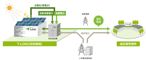 T-LOGIシリーズは、省エネルギー化の推進と再生可能エネルギーの活用による環境配慮型物流施設の開発を推進しており、原則、すべての物件において『ZEB』認証の取得を目指しています※2。物流施設の特性を生かし、太陽光パネルの実装により、施設内での消費量を上回る再エネ電力を余剰電力として創出しており、竣工済み物件においては、一次エネルギー平均削減率が138%※3となっています。