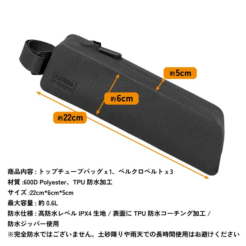 【新商品】【スマートな細身デザイン!!】自転車パーツブランド「GORIX」から、トップチューブバッグ(GX-TBUTTER) が新発売!!