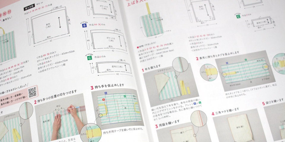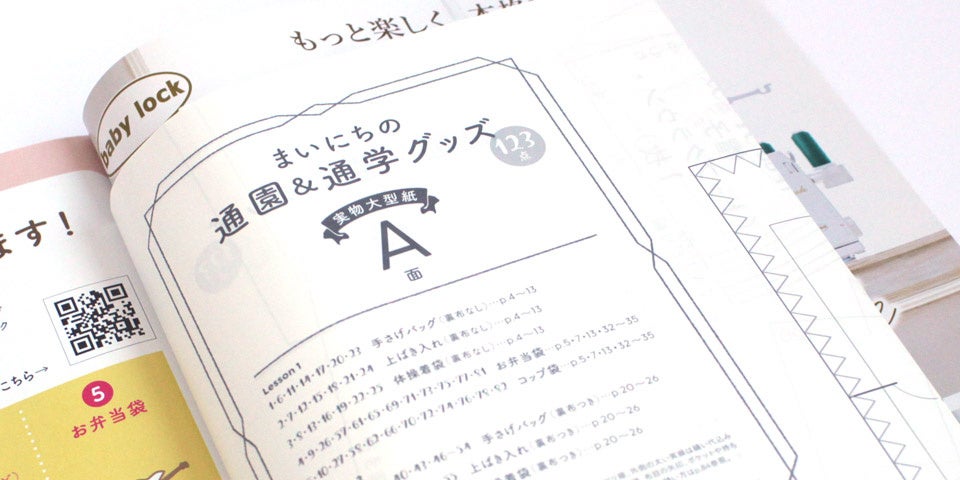 手さげバッグ・上ばき入れ・体操着袋など基本作品に共通で使われる縫い方は、ポイント動画をご用意。作り方ページに掲載の二次元コードを読み取ってアクセスすることで、動画を見ながら確認していただけます。