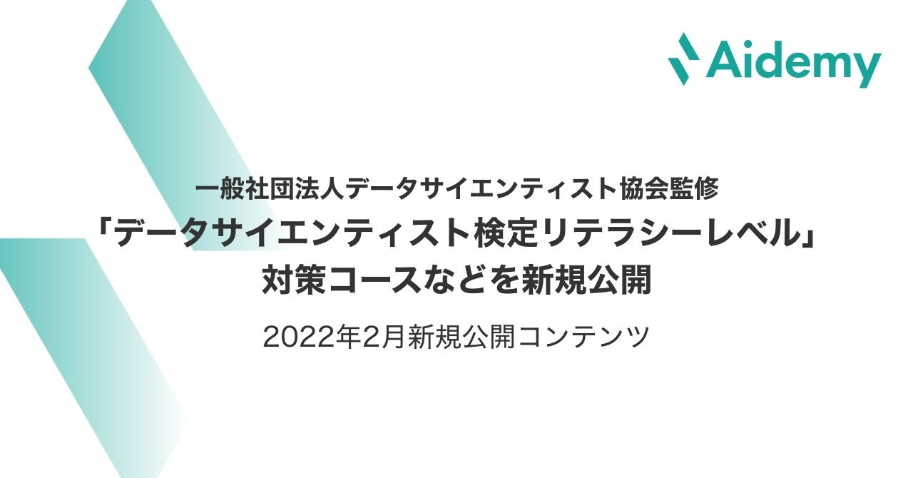 AIを中心としたDX人材の育成から実運用まで一気通貫で支援する株式会社アイデミー(本社:東京都千代田区、代表取締役執行役員 社長CEO 石川聡彦、以下「アイデミー」)は、2022年2月の新規公開コンテンツとして「数学入門(線形代数)」コース「データサイエンティスト検定リテラシーレベル」対策コースの提供を開始いたしました。