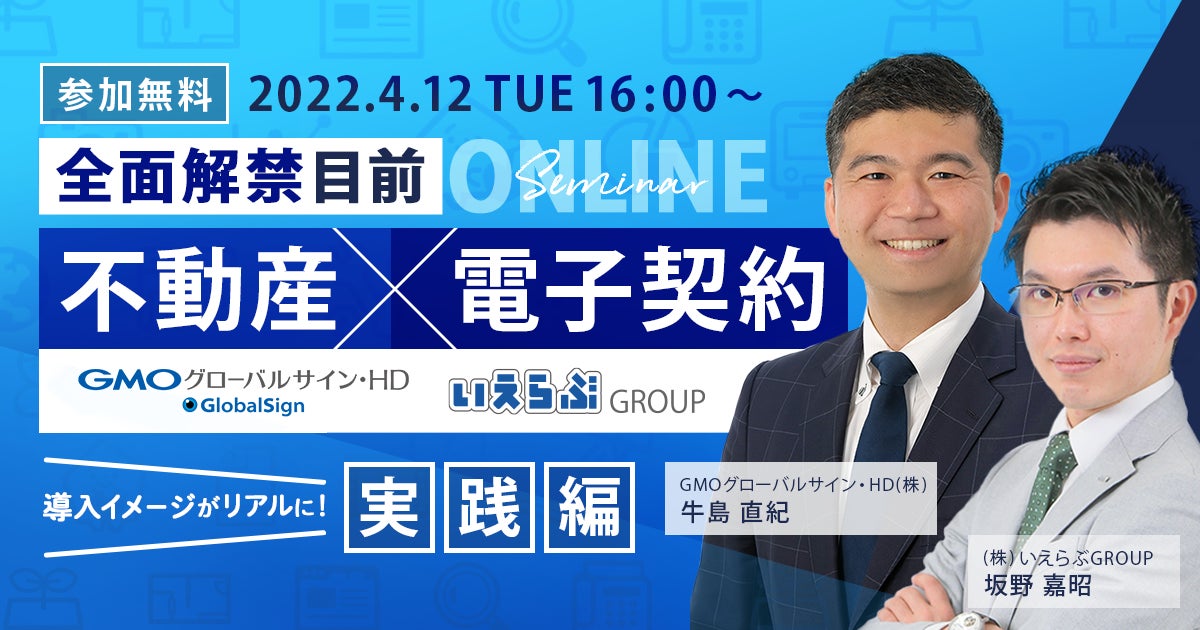 株式会社いえらぶGROUP(本社:東京都新宿区、代表:岩名泰介、以下いえらぶ)は、GMOグローバルサイン・ホールディングス株式会社(本社:東京都渋谷区、代表:青山 満、以下GMOグローバルサイン・HD)と共催で、