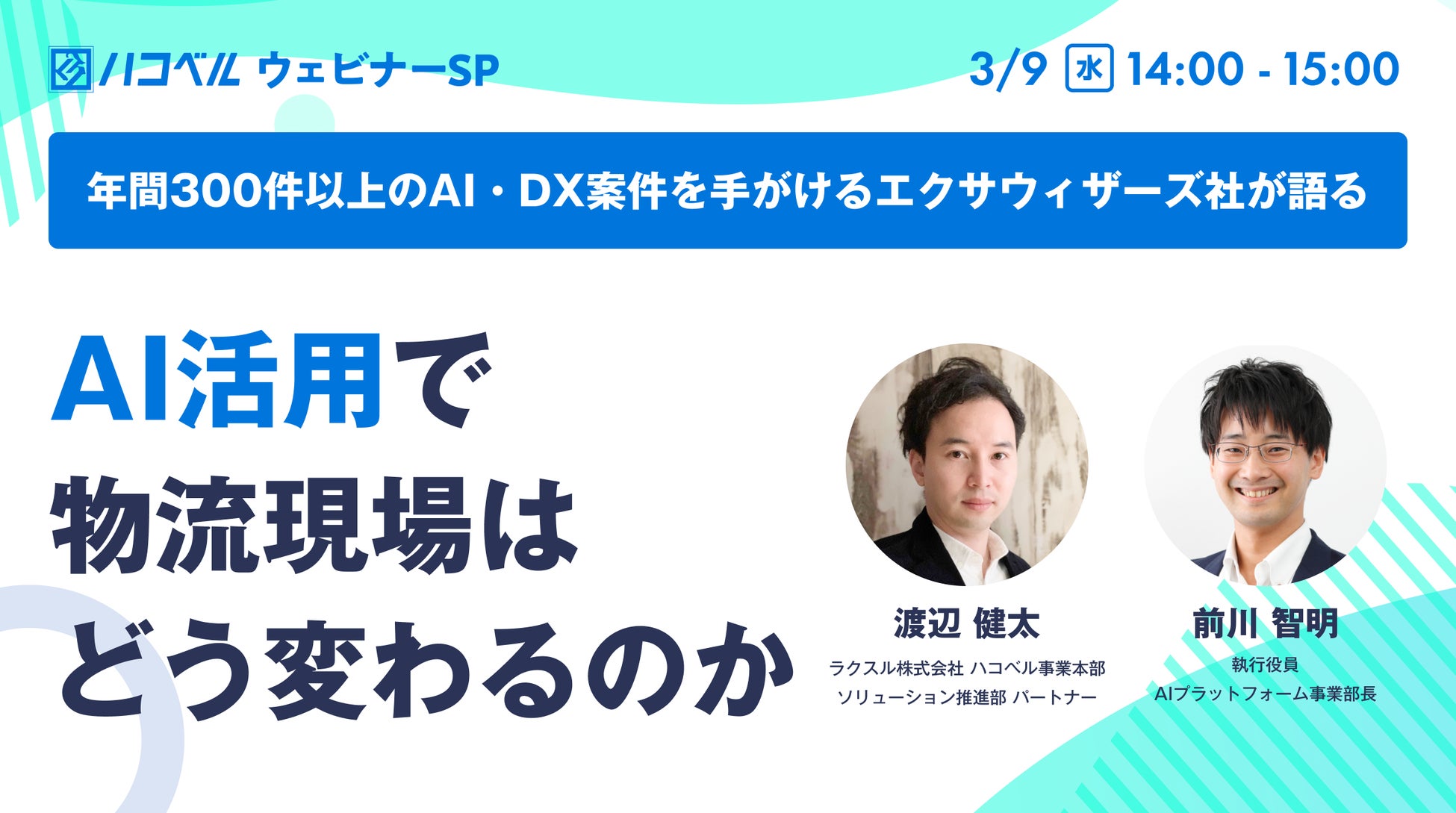 【3月9日(水)ハコベルウェビナー開催】-年間300件以上のAI・DX案件を手がけるエクサウィザーズ社が語る- AI活用で物流現場はどう変わるのか