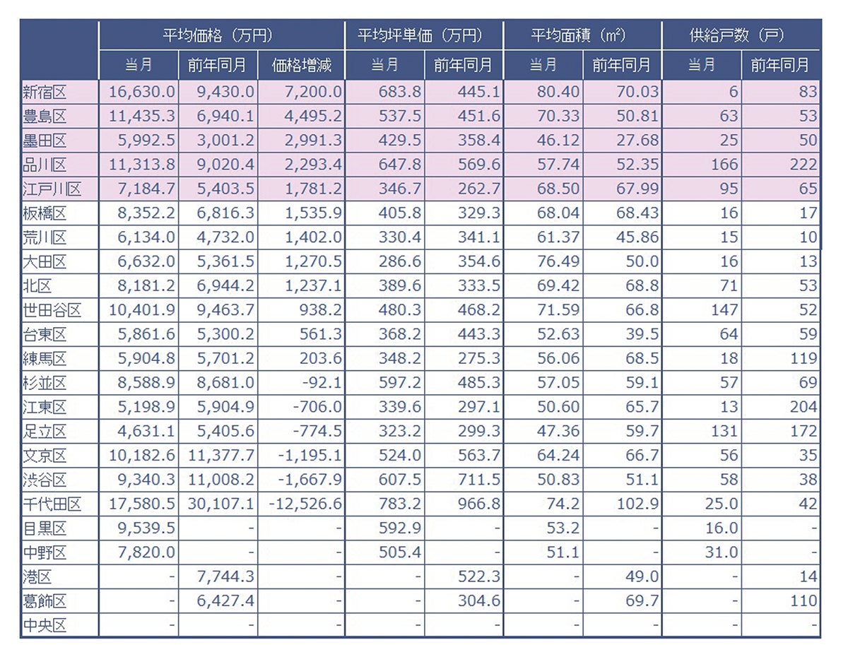 当社が調査した2023年9月の東京23区、行政区別分譲実績データ(速報値)です。