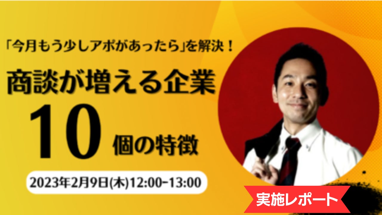 「営業の悩みを0にする」をミッションに営業コンサルティングを行う株式会社営業ハック(本社:東京都港区・代表:笹田裕嗣)が、2023年2月9日(木)に無料のオンラインセミナーを開催しました。商談が増えている企業と、商談が減っている企業はどの部分に違いがあるのか。営業パーソン全員が向き合っている「アポ数」を増やすためのポイントを、実際の事例も交えながら解説しました。当日の様子をここにご報告いたします。