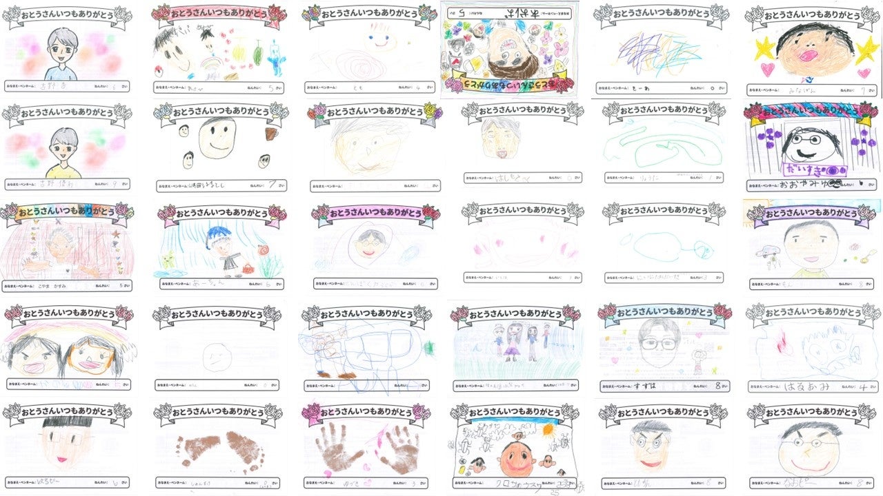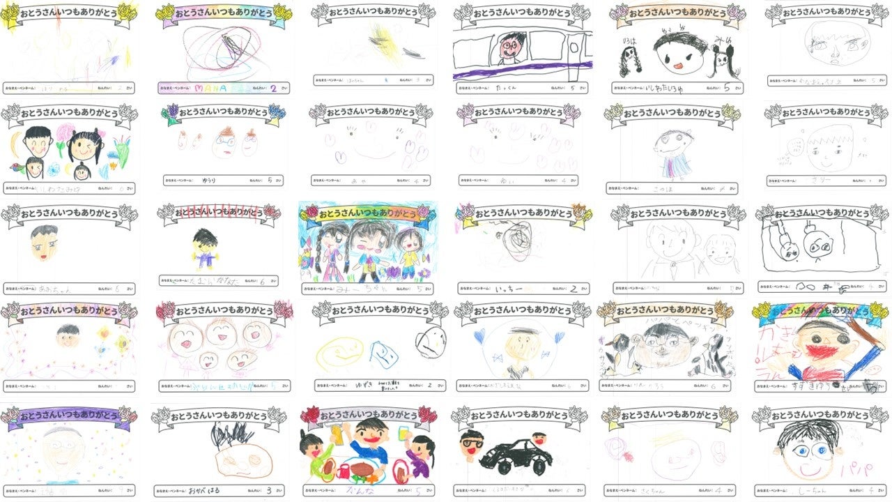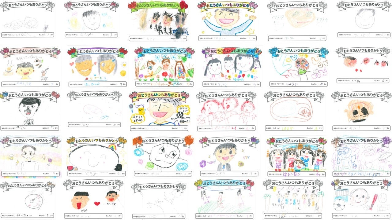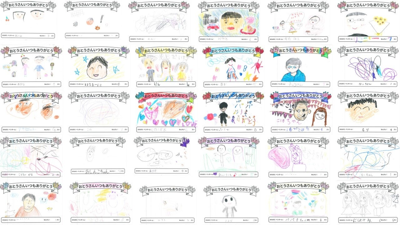 「おとうさんいつもありがとう」有明ガーデンに163名の子どもたちから父の似顔絵が集まる