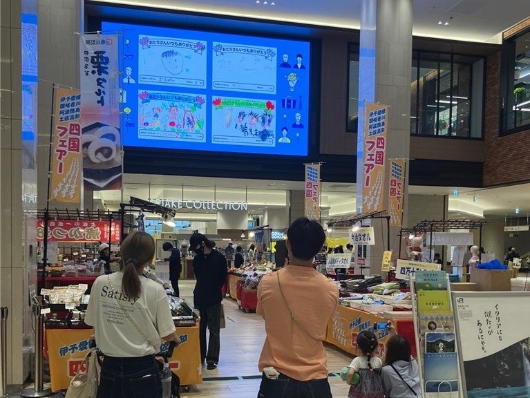 完成した似顔絵は、有明ガーデンの館内大型ビジョンで放映されました。