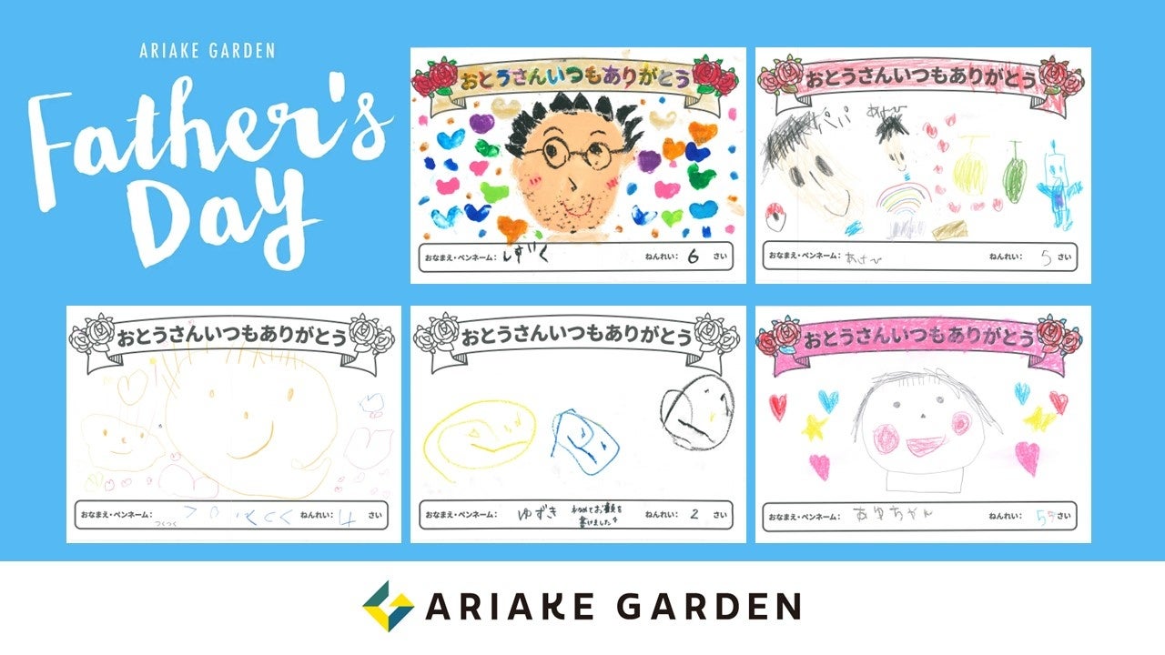 2024年5月13日(月)から6月9日(日)までの間、有明ガーデンで開催された「父の日似顔絵大会」には、小学生以下の子どもたち163名が参加しました。抽選の結果、5名の方には特賞として「ディズニー・オン・アイス」有明アリーナ公演チケット(1組4名様分)を、20名の方には有明ガーデン賞として「西松屋有明ガーデン店の西松屋ギフトカード2,000円分」をプレゼントしました。尚、似顔絵は施設内2箇所の大型ビジョンで6月30日(日)まで放映されます。多数のご応募、誠にありがとうございました。