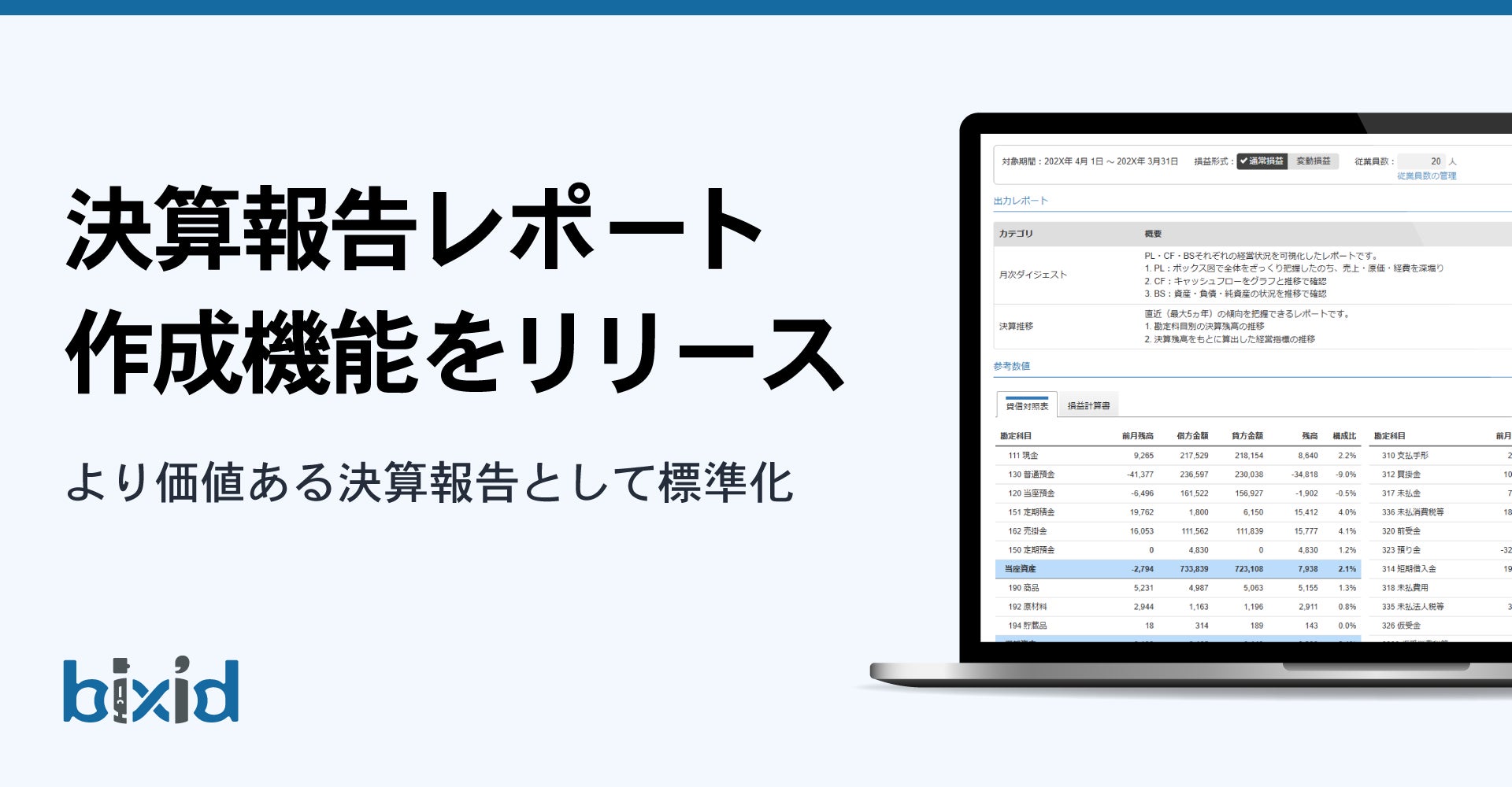 経営支援クラウド「bixid(ビサイド)」、決算報告レポート作成機能をリリース