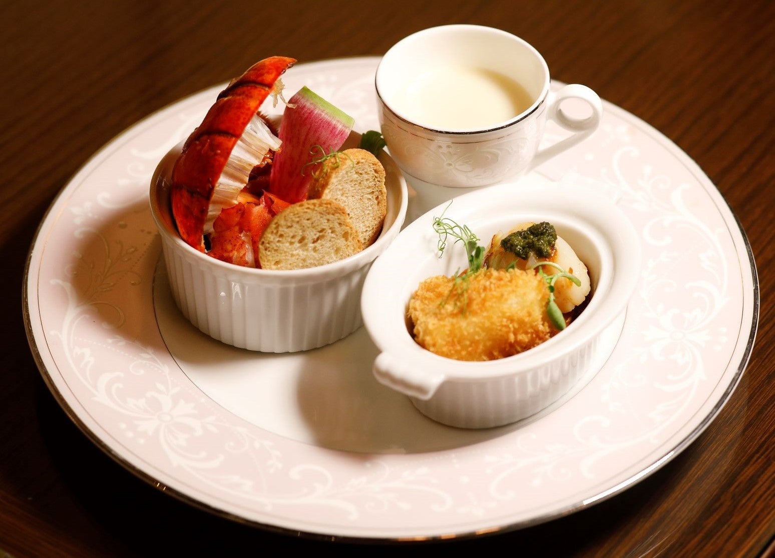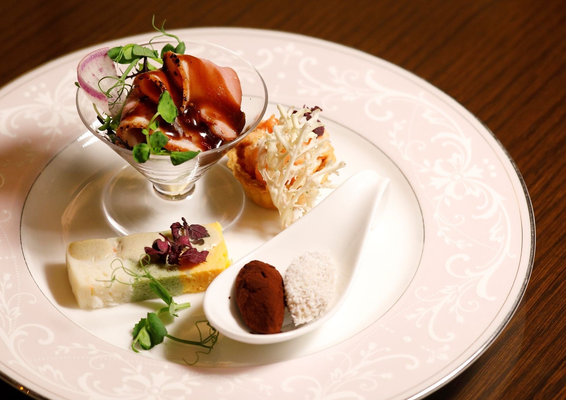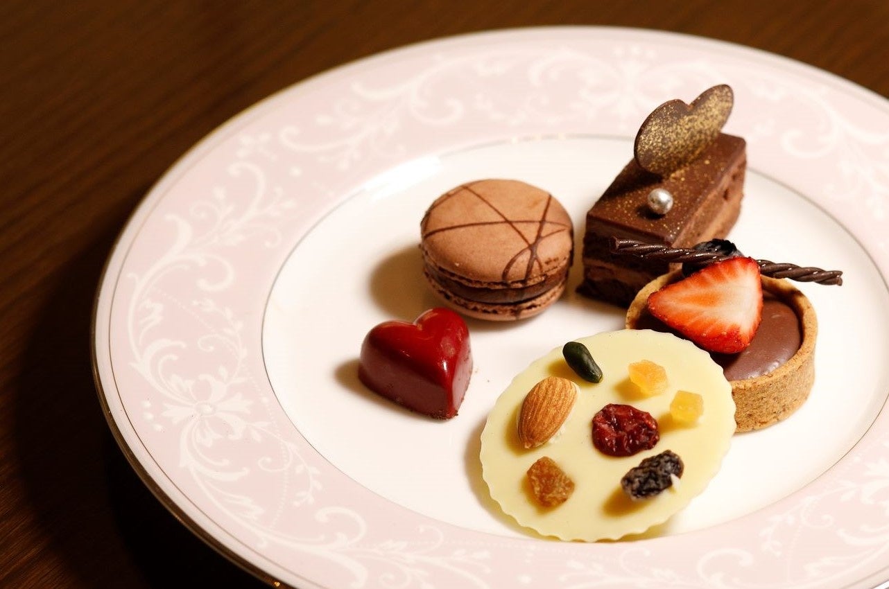 また、期間限定で販売する「バレンタイングルメスタンド」のお料理は、トリュフチョコレートに見立てたフォアグラムースやオマール海老のポワレなど、豪華食材を使ったセイボリーをご用意いたします。スイーツはハート形のボンボンショコラやチョコレート味のマカロン、ガトーショコラなど、チョコレート尽くしなバレンタインにふさわしい一皿をご提供いたします。