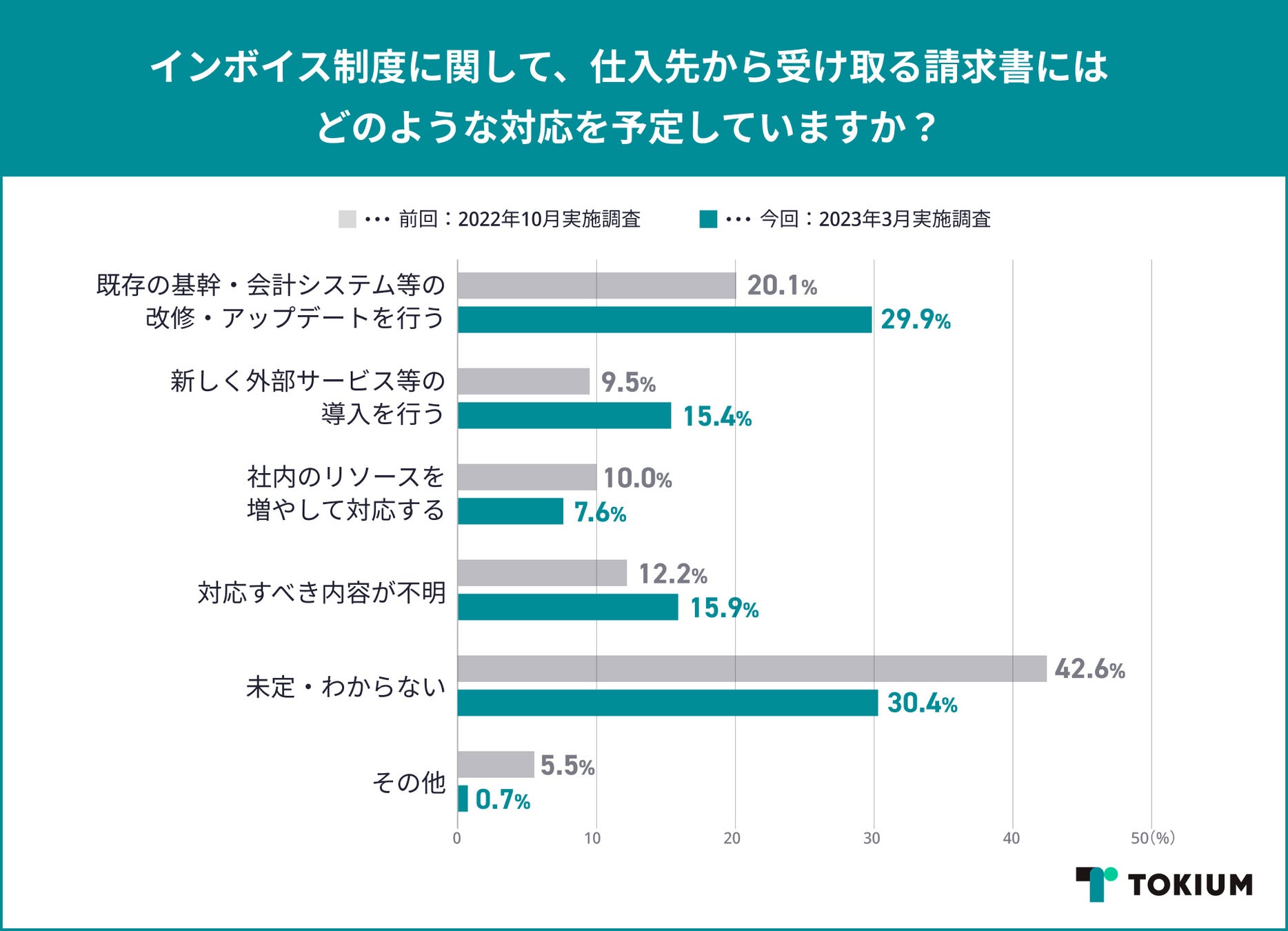 「対応方法が不明」も15.9%。インボイス制度の受領側の対応に課題。半数近くが未だに対応方針が不明瞭