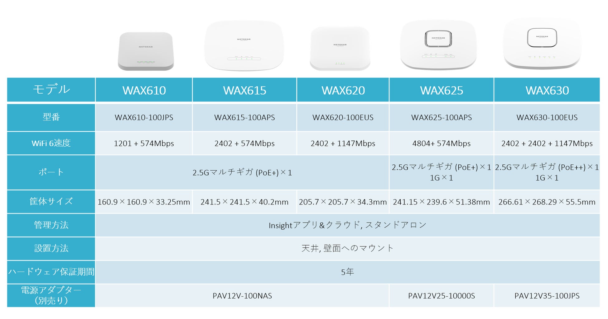 - 製品ページ:https://www.netgear.com/jp/business/wifi/access-points/wax625/