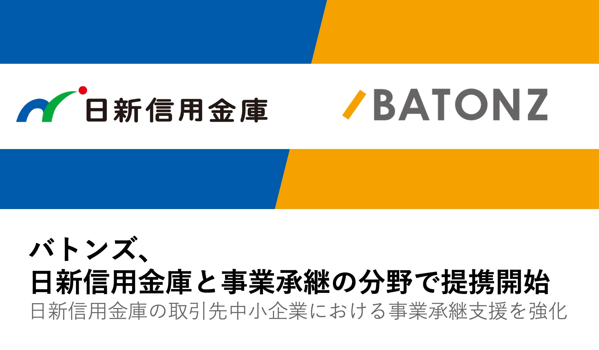 後継者のいない中小企業・小規模事業者の第三者承継・M&Aを推進するため、日新信用金庫とバトンズが連携し、事業承継支援ネットワークを強化します。これにより、兵庫県を中心とした後継者不在企業の事業承継を推進して価値ある事業を次世代へとつなげることで、雇用を守り地域経済の活性化を図ることを目的としています。