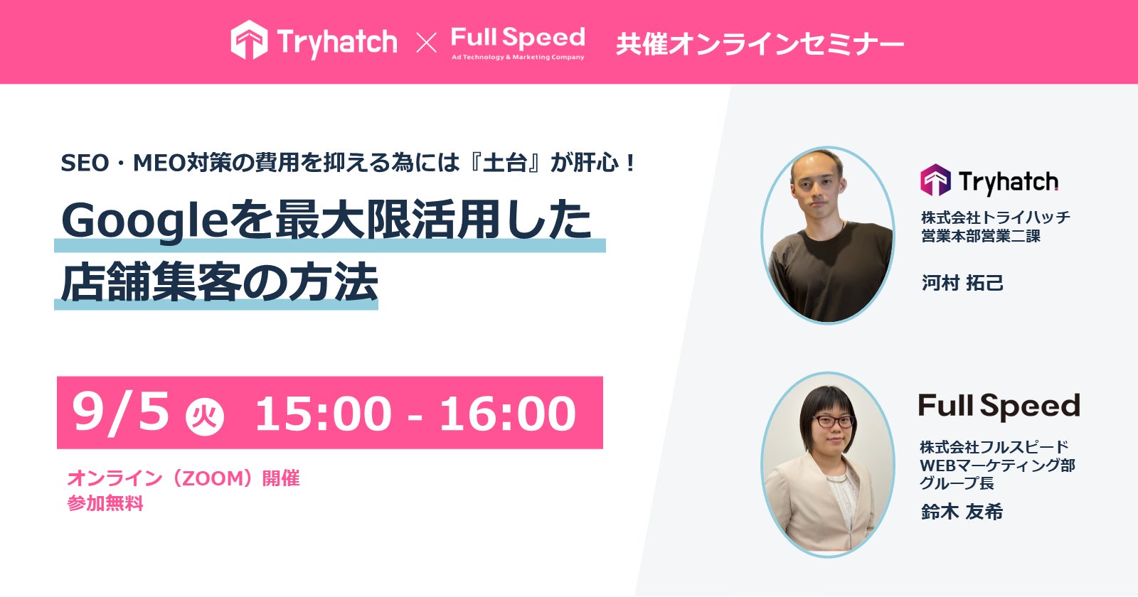 【9月5日(火)15:00~】無料WEBセミナー「SEO・MEO対策の費用を抑える為には『土台』が肝心! Googleを最大限活用した店舗集客の方法」を開催