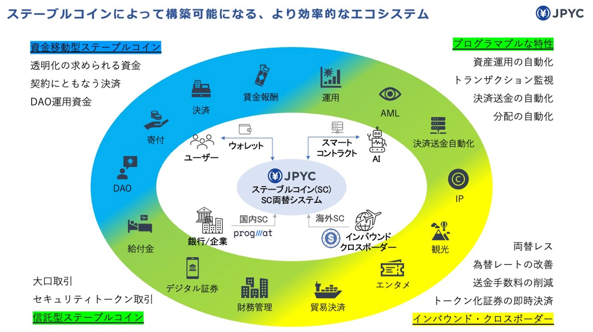 JPYC株式会社は、ステーブルコインの特性である透明性や送金手数料の低減により、より効率的なエコシステムの構築に取り組んでまいります。