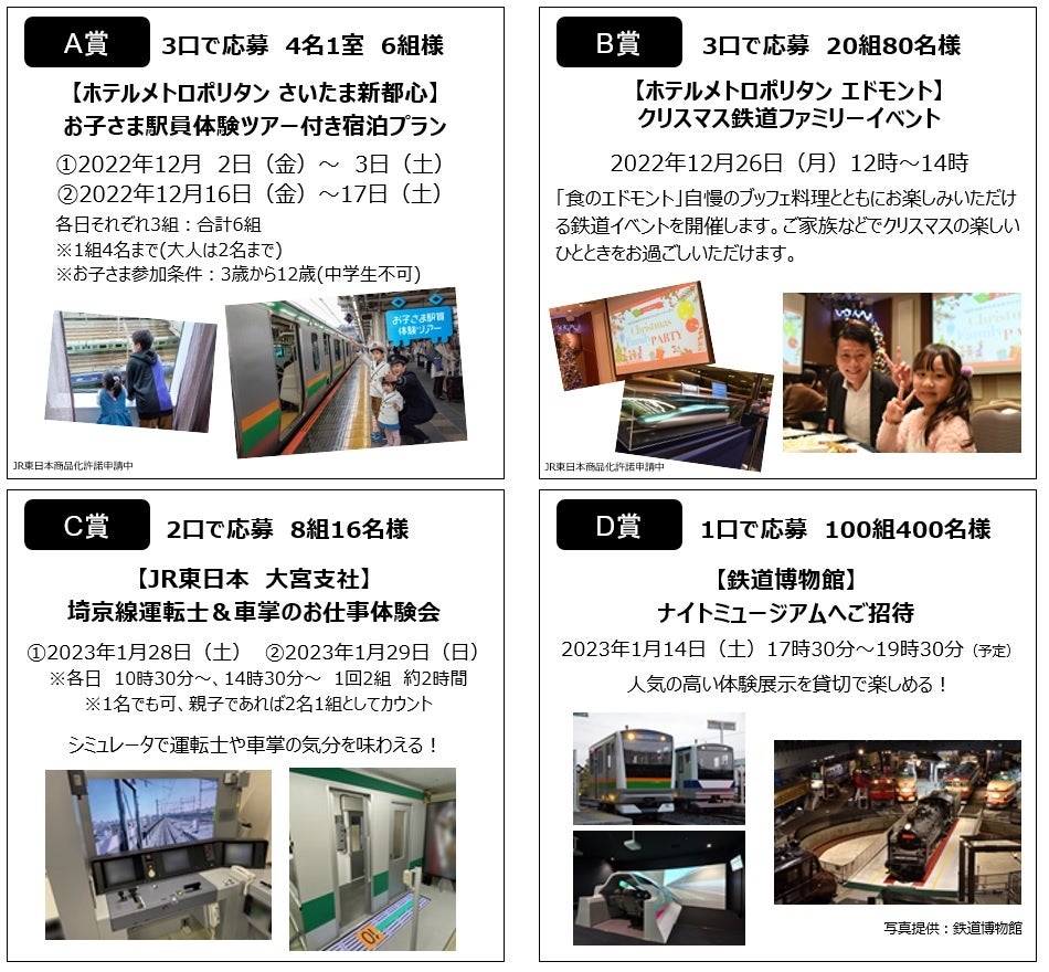 ⑴対象商品1品以上を含む、600円(税込)以上ご購入のレシートに発行されるIDでご応募いただくと、鉄道にちなんだ「コト」体験が当たるプレゼントキャンペーンを実施。