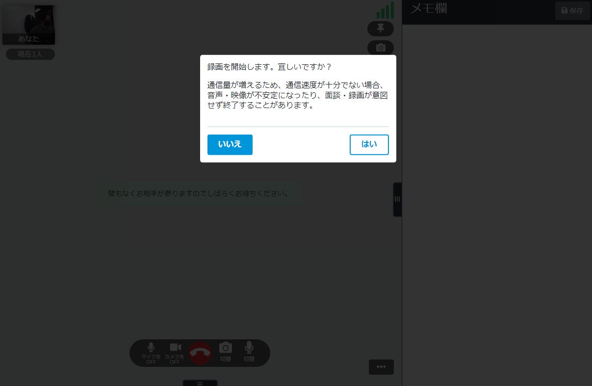 これまで録画を開始するには、面接開始後に録画メニューを選択して開始する作業が必要でしたが、ご利用企業様から「録画開始の作業が手間」「録画をするのを忘れてしまうことがある」といったお声をいただき、この度面接開始時に自動的に録画開始のポップアップを表示して録画を促す機能を実装いたしました。