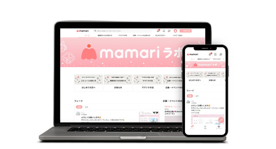 「mamariラボ」とは、「少しの1歩でなりたい自分に出会える場所」をコンセプトにしたママリ発のコミュニティです。コミュニティ内ではメンバー同士でコミュニケーションを取れることはもちろん、サンプリング企画やイベントに参加できたりと、楽しめるコンテンツが盛り沢山の内容となっています。