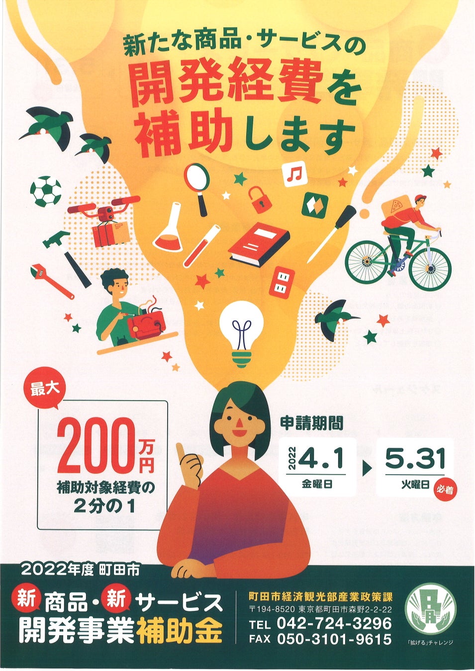 【東京都町田市】市内中小企業者の“拡げる”チャレンジを支援!「新商品・新サービス開発事業補助金」の申請受付及び「トライアル発注認定制度」の商品募集中!