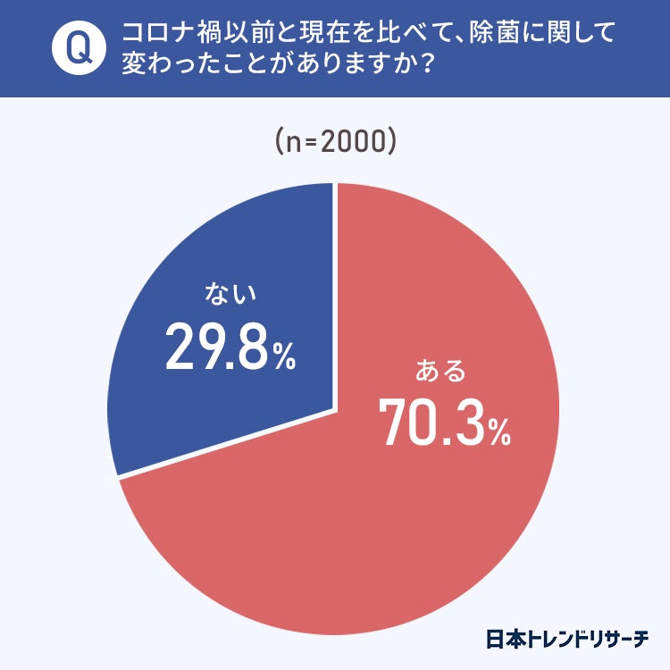 まず、コロナ禍以前と現在を比べて除菌に関して変わったことはあるか聞きました。