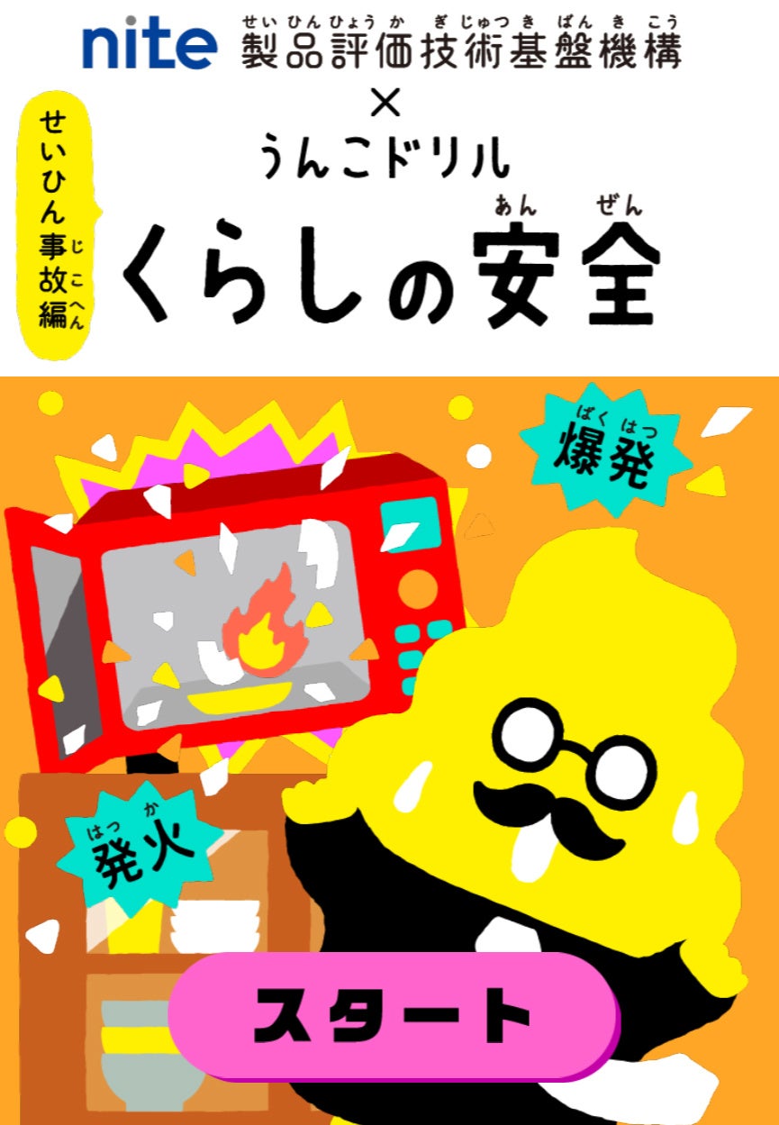 “うんこ”を通じて「くらしの中の危険」を学ぶ!?製品評価技術基盤機構とうんこドリルがコラボしたオンラインゲーム「くらしの安全ドリル(せいひん事故編)」。
