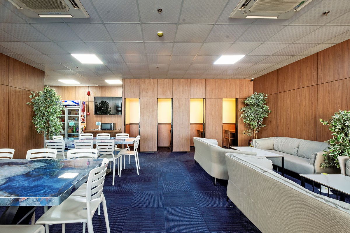 入口から男女に分かれており、カプセル、トイレ、シャワールーム、自習用のコモンスペースがあります。敷地内なのでレッスンの合間に戻って休憩することができます。
