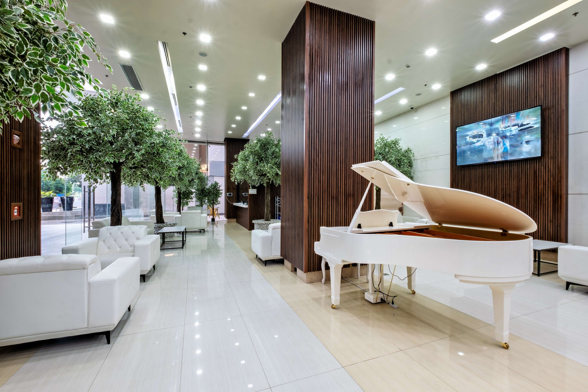 校舎出入口は1ヶ所で常に警備員が常駐し皆様の安全をお守りします。また入口にはフロントデスクやソファー、ピアノなどがございます。フロントデスクには日本人スタッフもいるため、日本語でのお問い合わせにも対応しております。