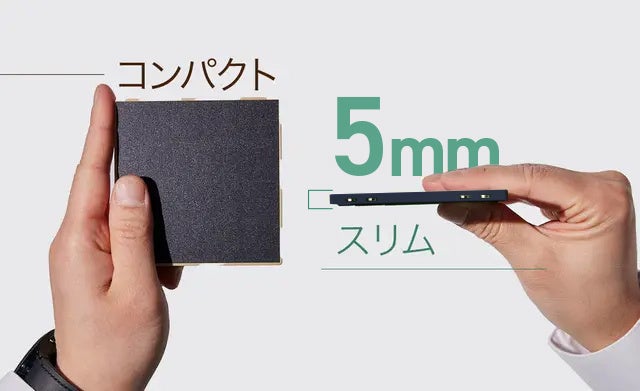 厚さ5mmのスリムなパネルです。荷物にならずにどこへでも持ち運びが可能です。重さも45g/枚と軽量です。