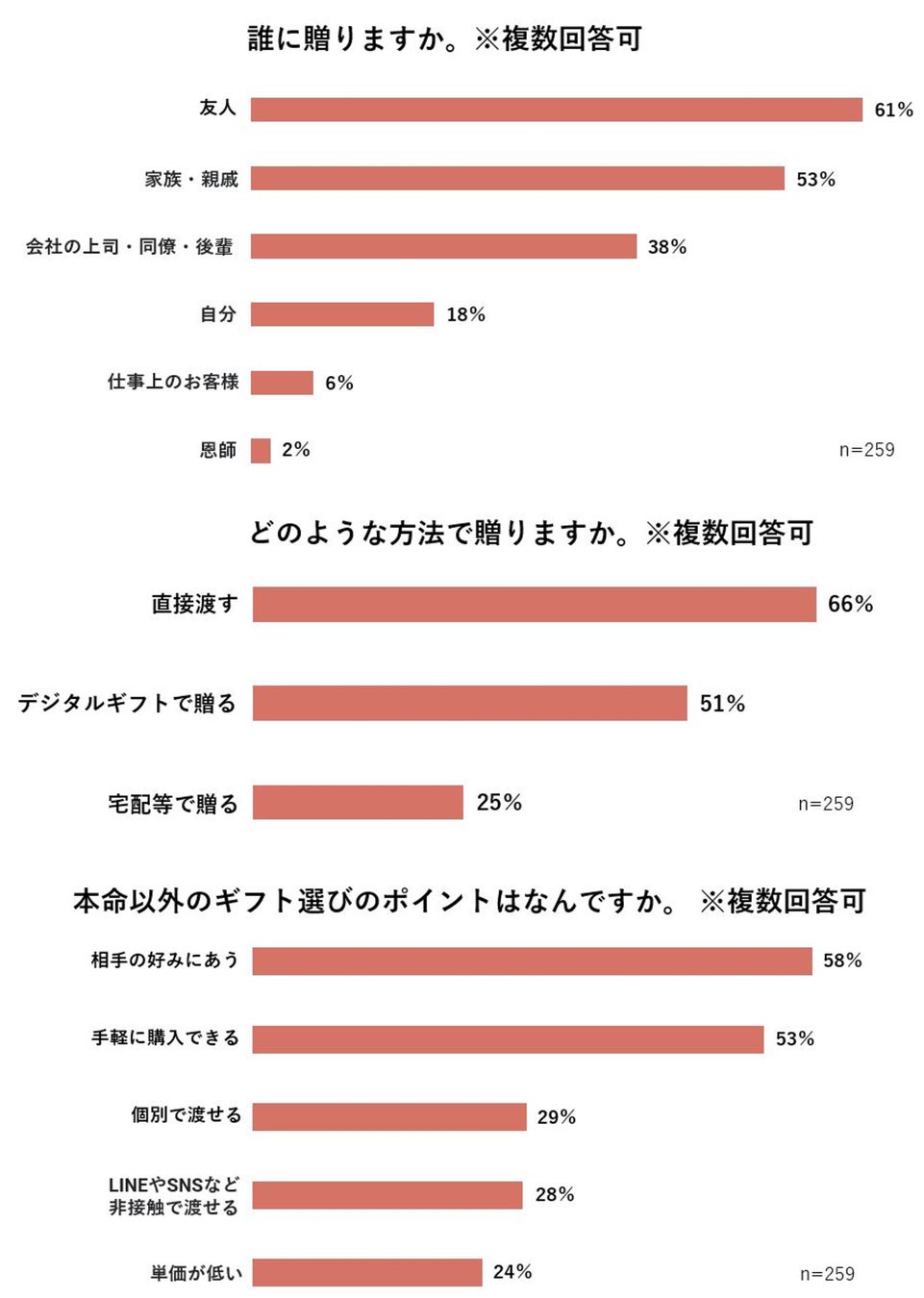| 【調査サマリー】 ▷今年、義理のバレンタインギフトを贈る人は7割以上 ▷義理のバレンタインギフトで相手との関係がよくなったと答えた人は8割以上 “あえて”義理バレンタインギフトを贈ることで、関係が深くない・疎遠になっていた相手と仲を深めるきっかけに ▷贈り方は「直接渡す」以外にも「デジタルギフトで贈る」が主流に |