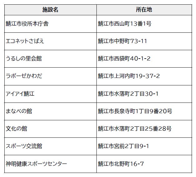 以下の9か所の施設に、6kWの普通充電器を2~4口ずつ設置予定です。
