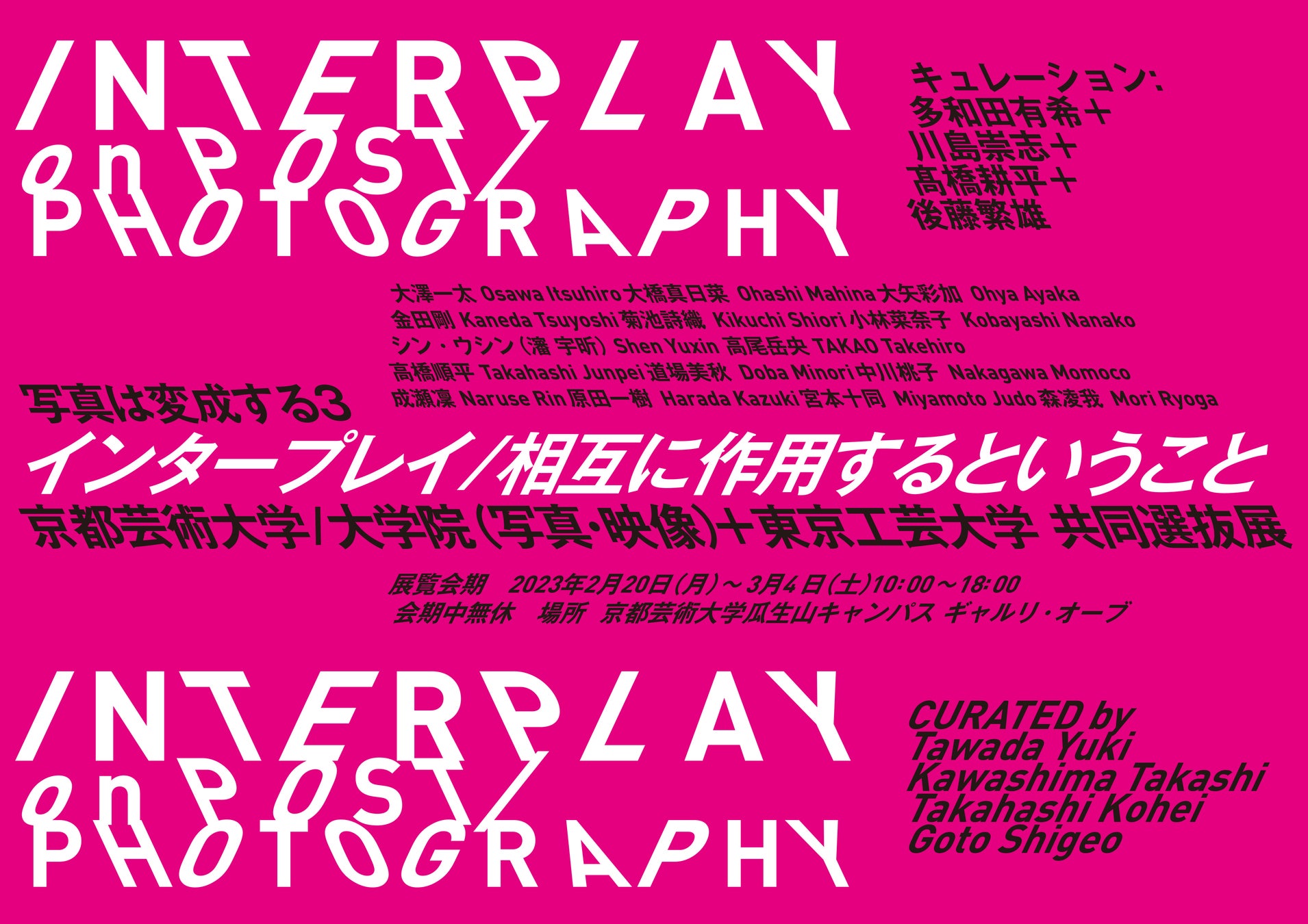 現代写真展「写真は変成する 3 INTERPLAY on POST/PHOTOGRAPHY」を2/20(月)から 3/4(土)まで京都芸術大学 ギャルリ・オーブにて開催。