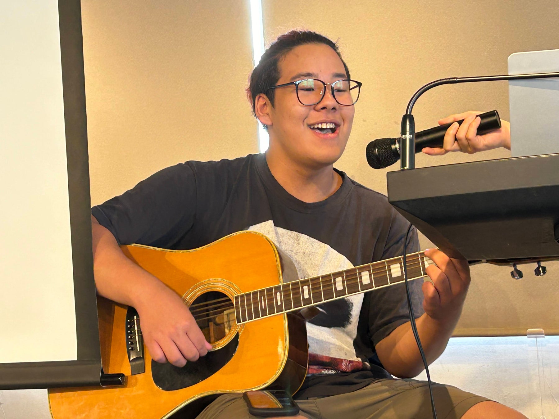 過去の学期末発表会でも、ギターを生演奏した生徒は初であり、初めての1年生の発表で演奏をしてしまう心意気が素晴らしいです。