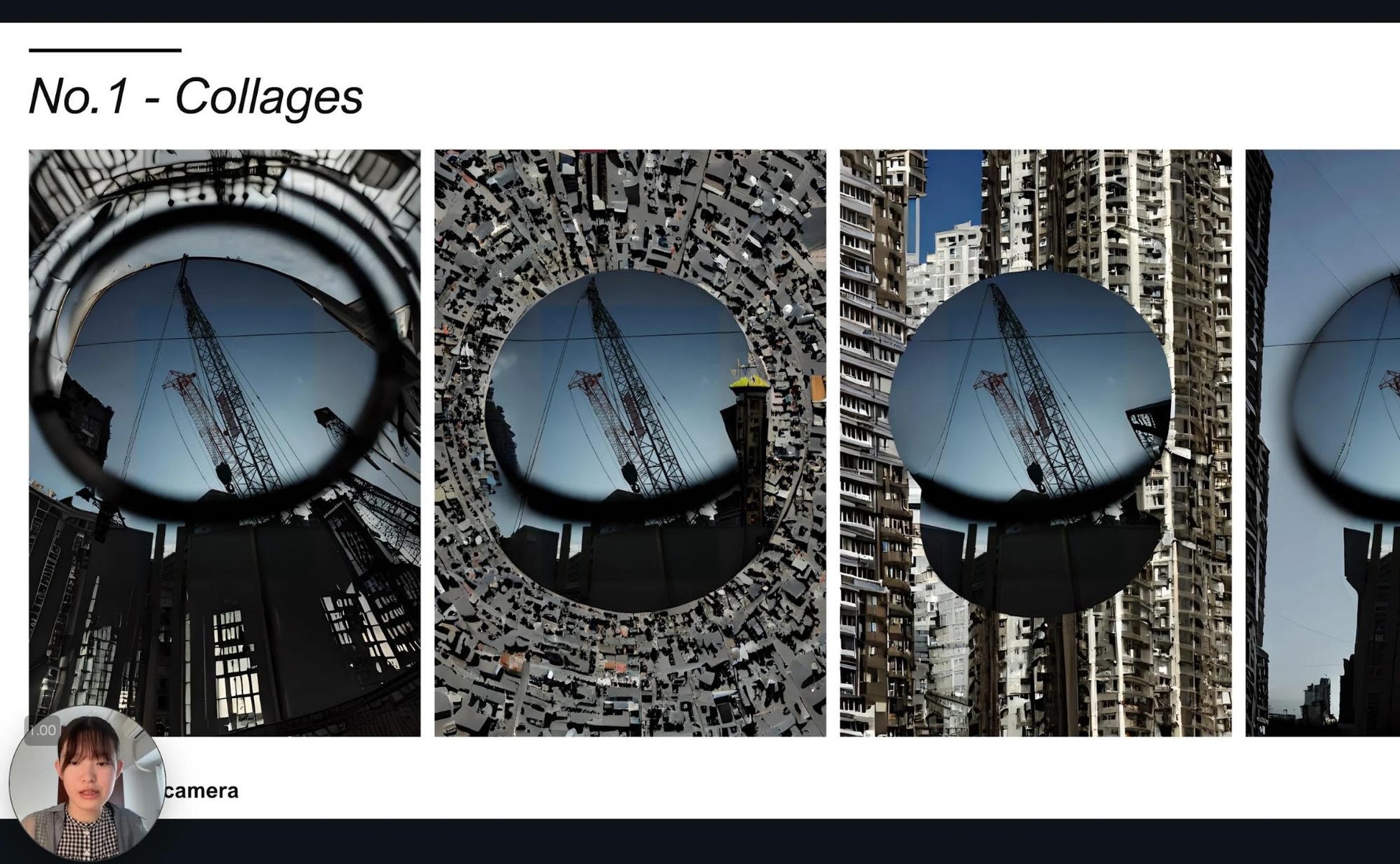 「場所の情感を拡張する」をテーマに、自分が撮った風景写真を写真・動画生成AIでコラージュや拡張などをした生徒による発表です。