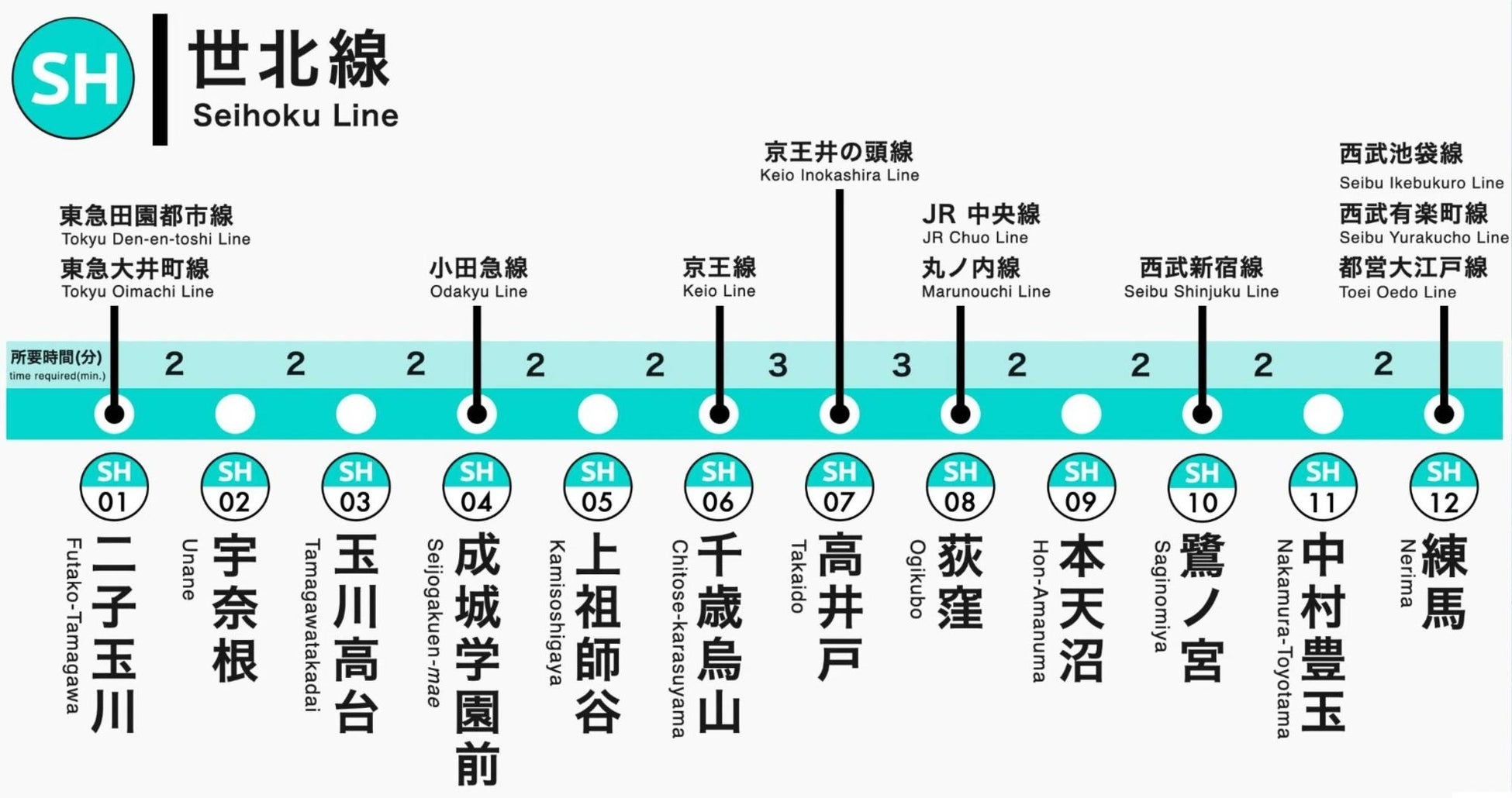 東京西側の南北を繋ぐ路線となっており、ロゴやカラーコードも丁寧に作りこまれています。