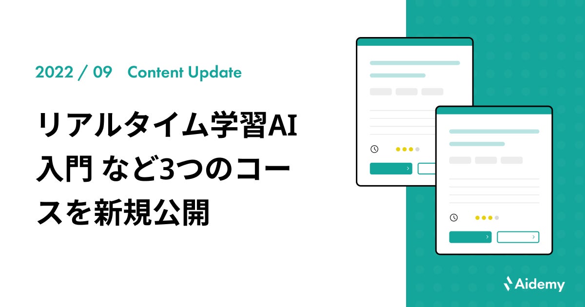 「リアルタイム学習AI入門」など3つのコースを新規公開