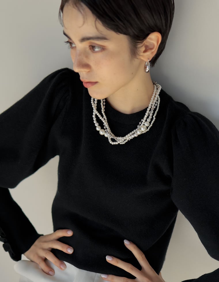 フェイクパールが連なったボリューミーなネックレスが登場。