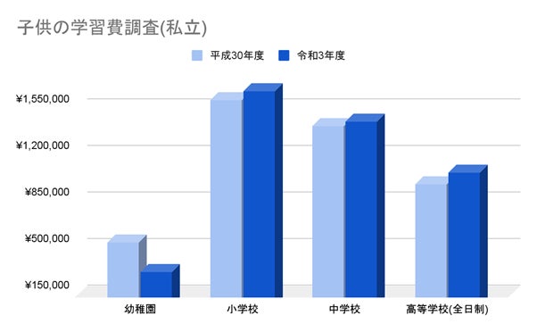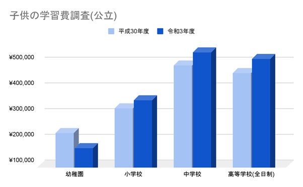 さらに文部科学省「令和3年度子供の学習費調査(https://www.mext.go.jp/content/20221220-mxt_chousa01-000026656_1a.pdf)」からも、保護者が子供にかける学習費は、幼児を除く各世代で上昇していることが分かっています。