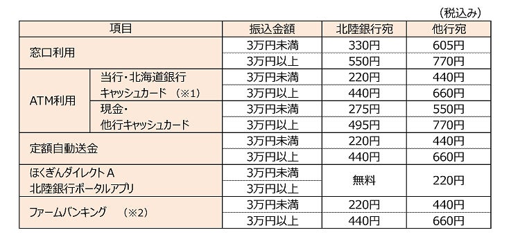 ほくぎんダイレクトA・北陸銀行ポータルアプリ利用による振込手数料の改定について