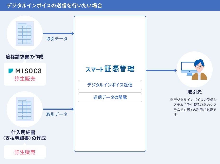 弥生シリーズと「スマート証憑管理」を利用したデジタルインボイス対応の全体像