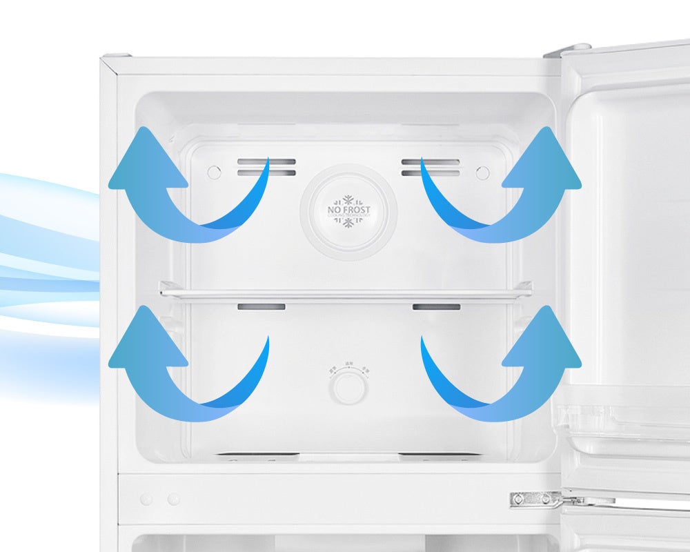冷気を全体にムラなく広げ、自動で霜取りを行うファン式自動霜取りを採用しておりますので、お手入れを簡単にすることができます。