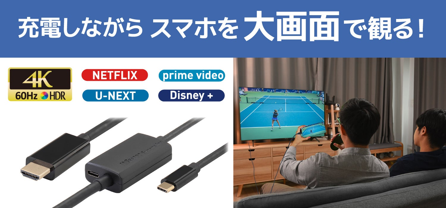 スマホの映像を大画面で楽しもう!PD対応のUSB Type-C to HDMI変換ケーブル、12月中旬発売