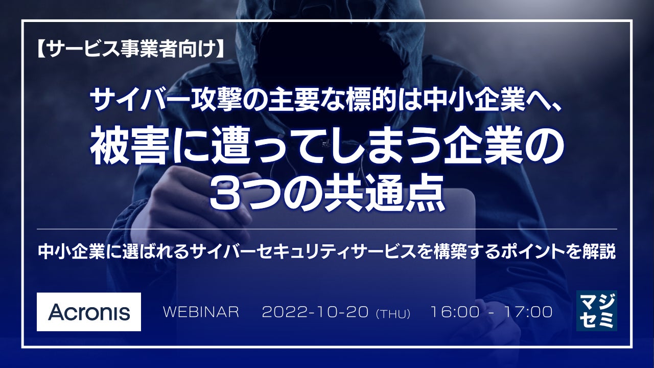 ・2022年9月15日に開催したセミナー「【サービス事業者向け】中小企業を狙うサイバー攻撃が急増、被害に遭う企業が抱える3つの課題」と同じ講演内容を含んでおります。多数のご要望により、追加開催させていただきます。
