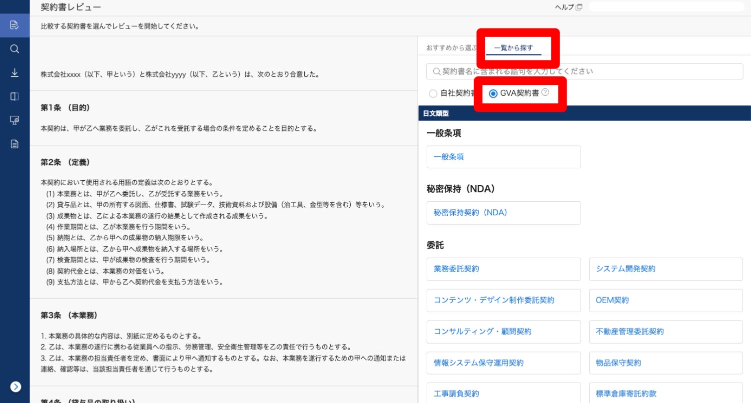今回のリリースをもって、GVA assistで使用できる契約書の数は以下となりました。