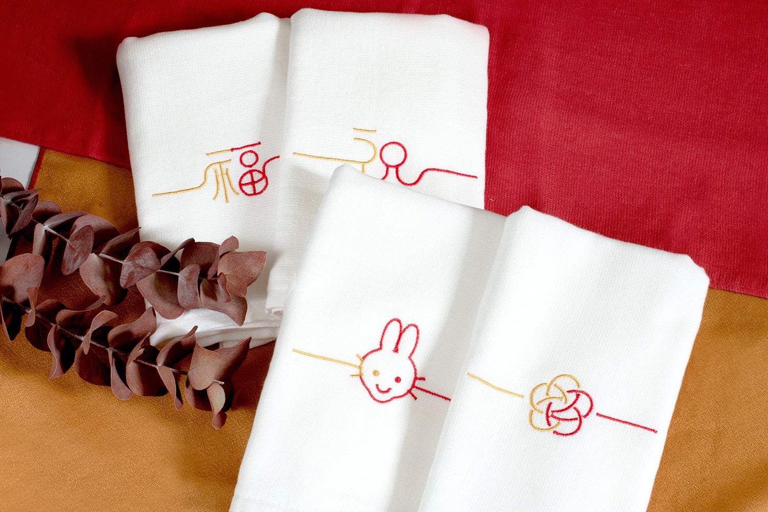 水引きがタオルに刺繍された、お祝い専用タオル「めでタオル(ガーゼ)」から新柄が新発売しました。