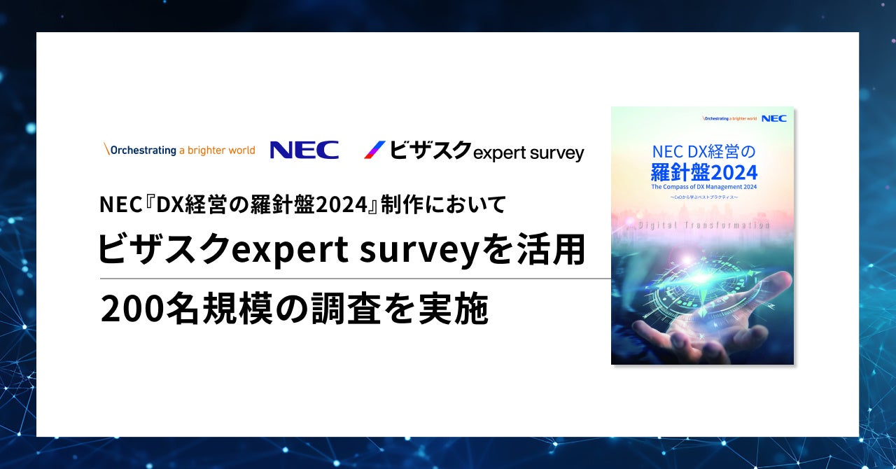 本日発刊!NECによる24年度版CxOレポート『DX経営の羅針盤2024〜CxOから学ぶベストプラクティス〜』 制作においてビザスクのアンケート調査サービスを活用