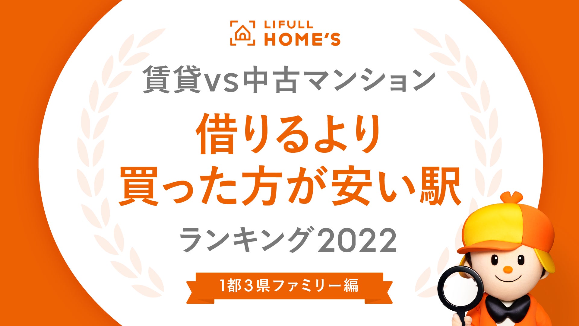 「賃貸vs中古マンション 借りるより買った方が安い駅ランキング2022 ~1都3県ファミリー編~」LIFULL HOME'S PRESSが発表