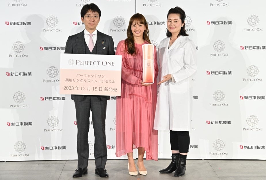 「パーフェクトワン 薬用リンクルストレッチセラム」のPRアンバサダーへの就任については、「アラフォー世代は色々な悩みが出てきてワガママになってくるので、私世代へ向けたありがたい新商品を応援することが出来るなんて光栄です」と、はじけるような笑顔を見せていました。