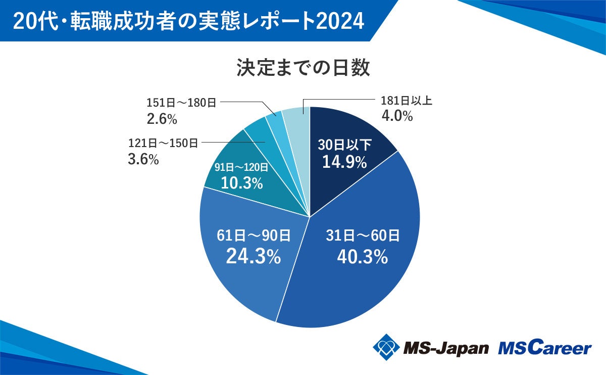 ④【20代が転職先決定までにかかった日数は「31日~60日」が最多で40.3%】