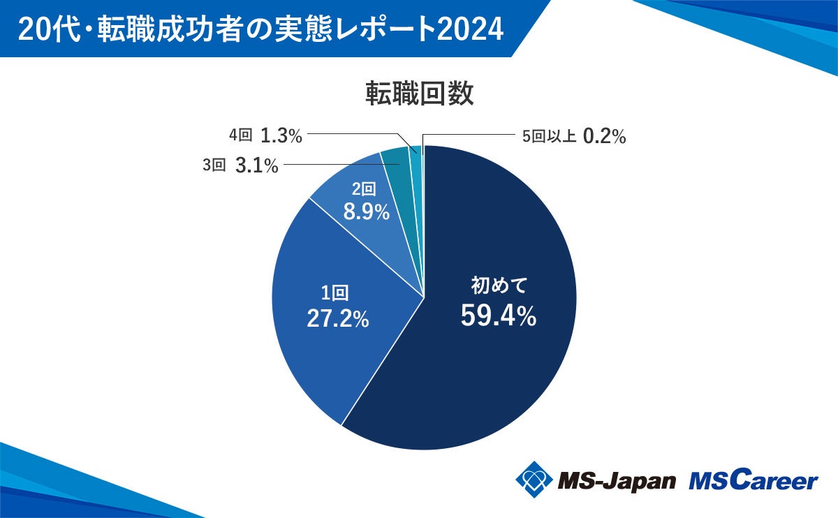 転職回数を見てみると、今回「初めて」転職する人の割合が59.4%で最多という結果となりました。