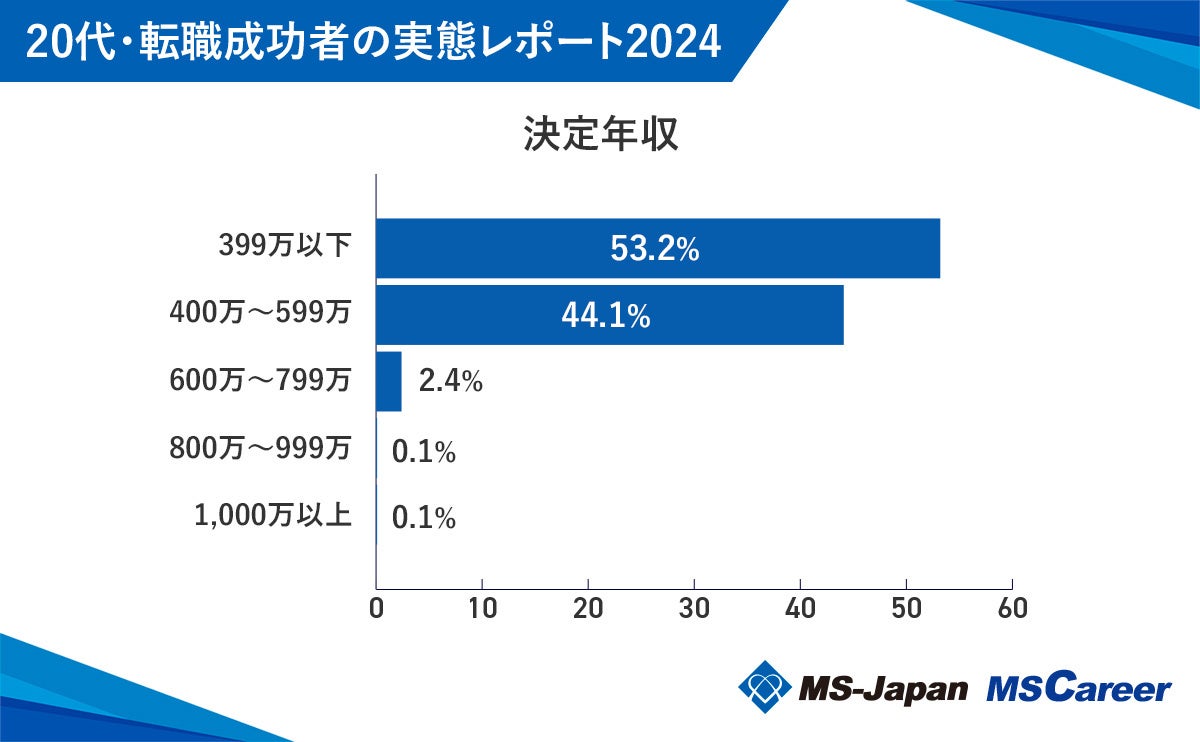 株式会社MS-Japan(本社:東京都千代田区 代表取締役会長兼社長CEO:有本隆浩/以下MS-Japan 証券コード:6539)が運営する、管理部門・士業の総合転職サービス「MS Career(エムエスキャリア)」は、「20代・転職成功者の実態レポート2024」を発表しましたので、お知らせいたします。本調査は、2023年1月1日~2023年12月31日にMS Careerが提供する人材紹介サービス「MS Agent」を活用して転職先を決定した20代の方のデータから、雇用実態についてまとめたものです。