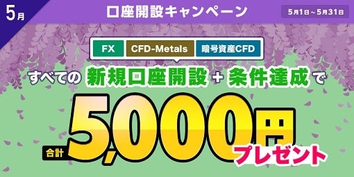 新規口座開設と条件達成で合計5,000円プレゼント!5月の口座開設キャンペーン